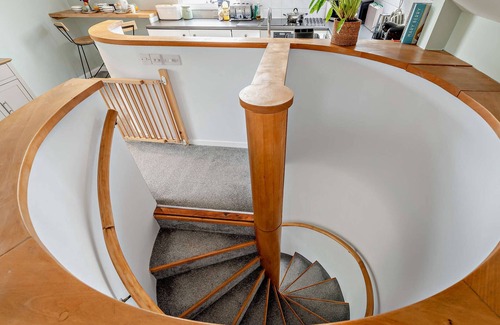 Enter this reverse-level house on the ground floor where you will find two bedrooms: a twin zip-and-link (which can be made into a super-king on request), and a king-size bed with patio doors out into the pretty garden – perfect for enjoying a morning cup of tea in the fresh air. The family bathroom is also located on the ground floor, as is the utility cupboard. The washing machine is in the integral garage. Head up the curved staircase to the open-plan lounge/kitchen/diner which is a light and airy space and a lovely area for relaxing after a busy day. A comfortable corner sofa is the ideal place to curl up with a good book or catch up on your favourite programmes on the Smart TV. Why not gather the family together at the dining table with seating for an evening of after-dinner board games? The kitchen is well equipped with all that you will need for delicious family meals and there is a handy breakfast bar from which you can enjoy magnificent views of Chilham Castle parklands.
