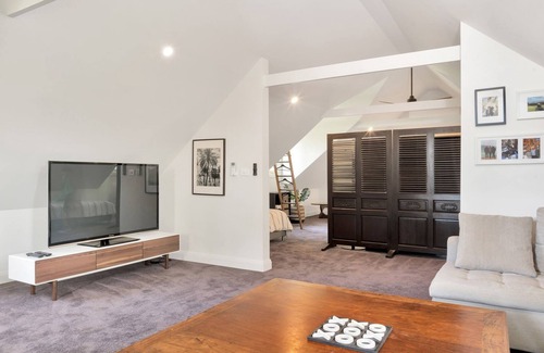 The Barn is set over two levels with a large open plan living area and bedroom upstairs. The bedroom area has a queen size bed as well as two singles. The lounge area has a flat screen TV with large inviting lounge where you can curl up and watch a movie. Your comfort is assured year-round with a reverse cycle air conditioner and ceiling fans.