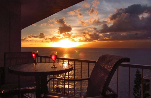 Our condo have the best view from our top floor penthouse condo compared to all the other studios, yes ours is the best. All the other studios on the lower floors do not have the view we do, that includes most of the one bedroom condos in the building. If you're going to rent a studio condo at the Royal Kahana this is the one you want. It has incredible views of the ocean and the island of Molokai and don’t forget the sunsets. In the winter from October 10th to March 10th the sun sets in the south so you can’t see it from our condo, our condo looks to the northwest. At that time you can go down to the pool deck or the yard and watch the sunset from there.