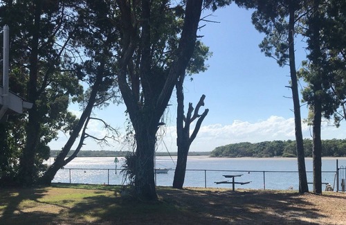 This grand old lady sits on the waterfront esplanade giving you deep water access to the Sandy Straits. Sleeping 8 people, the home has 3 bedrooms, main has a queen bed, second bedroom has 2 sets bunks & third bedroom has a queen bed. There are ceiling fans in most bedrooms and pedestal fans if required. The kitchen is fully equipped with everything you need, microwave, fridge/freezer and oven. The renovated bathroom has a shower and separate toilet (no bath). Also the renovated laundry has a washing machine (no dryer). Open air off street car parking in the large yard. There is a pontoon to more your boat for ease of access to fish and enjoy or beautiful waters. Enjoy the beautiful breezes. No pets allowed.