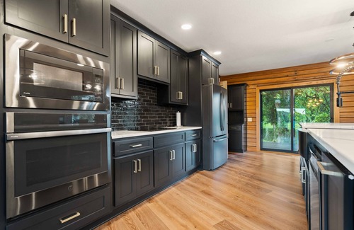 Recently renovated, our cabin offers the perfect blend of rustic charm and modern amenities, providing an idyllic sanctuary for those seeking peace and privacy. With three king suites, a cozy bunk room, and ample living space, it's ideal for families or groups of friends looking to unwind in style.