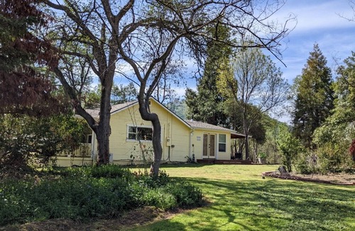 This cottage is located in a little complex with two other vacation rentals. Each unit is individual with a shared game room and outdoor kitchen BBQ area. The property is located close to the highway for easy travel access to King's Canyon & Sequoia National Park. This Unit is the Hollies Cottage and also on the property is the Nook. Great family property with a fenced grassy area with a playhouse and swings for the kids.