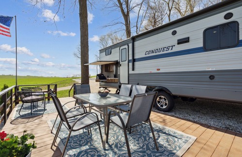 The Coastal Conquest Camper Rental, located on Silver Lake in Delhi, IA | RV Rental in Delhi