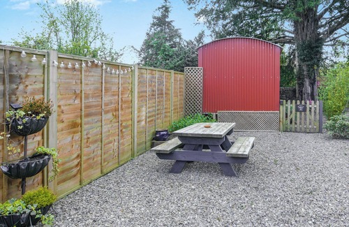 Shower Room: Cubicle Shower, Toilet. Electric central heating, electricity, bed linen and towels included. Welcome pack. Enclosed garden with courtyard, sitting-out area, garden furniture firepit/barbecue and summerhouse. Private parking for 2 cars. No smoking.. The Cygnet at The Swan Inn, is a handcrafted wooded Shepherd’s hut with an authentic feel resting in its own private garden behind The Swan Inn pub. The Swan Inn is a historic 14th century coaching house once accommodating a young Dick Turpin whilst on his travels. Located in a quaint village not far from Craven Arms, and reputedly the oldest pub in Shropshire.