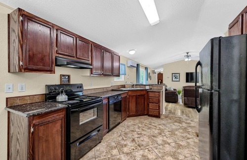 The generous living area and primary suite are equipped with smart TVs. The home is served with high speed fiber optic cable internet service for work or entertainment.