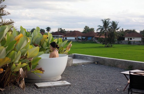 ‣ Enjoy the mountain views and lush paddy fields from the bathtub or while grilling on the Japanese BBQ
