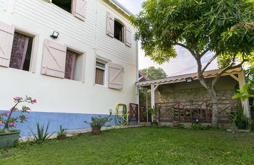 The apartment on the ground floor of a single house. With garden and terrace located 3 minutes walk from Montal beach in the town of Le Moule. The car park is secure.