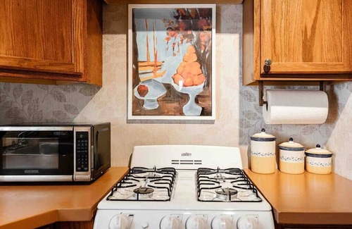 The Golden Suite is located on the first floor in the Retro Retreats, a 4 -family themed apartment building. Located a block away from bars, restaurants, coffee and more, you have everything you need for your getaway.