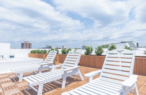 As evening falls, retreat to the rooftop terrace, a true highlight of this exceptional property. Here, panoramic views of Lake Michigan stretch as far as the eye can see, offering a perfect backdrop for sunset cocktails, starlit conversations, or simply unwinding in the warmth of the fire pit.
