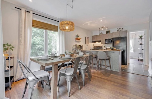 Escape to Mont Ste-Marie! Just steps from the chair lift, enjoy beautiful hikes, mountain biking, and skiing. After a day of adventure, relax with high-speed internet, A/C, and an indoor gas fireplace to stay warm in winter. Unwind on the balcony with a BBQ and gas fire table, all while taking in stunning mountain views. Perfect for a quick getaway or longer stay, this cozy condo offers the ideal spot for relaxation. Book now for an unforgettable experience!