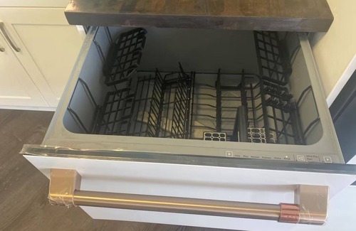 The fully equipped kitchen features a bespoke full-size fridge, electric stove with built-in air fryer, hidden drawer-style dishwashers, and a complete coffee station. Dine outdoors at the weatherproof picnic table and catch sunset cocktails or sunrise coffee — or both. Why choose?