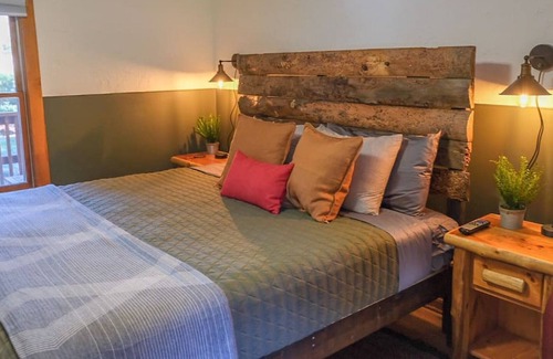 The Lodgepole Suite is one of our most rustic offerings, located in a historic, motel-style row of adjoining units lovingly dubbed the "Forest Suites." Your suite includes a king bed, small bathroom, fridge, microwave, coffee station, gas grill, and private riverview deck space with your own hot tub. Ideal for groups of 1-2.