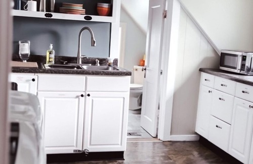 This 2nd-floor suite is part of a charming 100-year-old Victorian-style home converted into a duplex. To enter, head through the front door, and take the stairs to your right. Your private entrance awaits at the top.