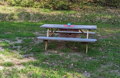 This unique space offers a central location to many attractions. It is an open concept, spacious floor plan with a loft for sleeping. There are concrete floors to keep cool in the summer but bring your slippers in the winter. This is in a beautiful, private wooded setting with a fire pit and outdoor eating area and plenty of yard space to bring your favorite games.
