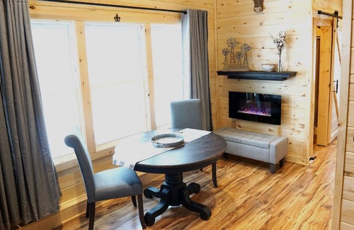 Offered by LURAY MOUNTAIN CABINS, this absolutely romantic and luxurious lofted cottage is perfect for couples! Newer construction, impeccably clean and well stocked home features a kitchenette (counter-height fridge, oversized convection toaster oven, hot plate, microwave, coffee maker, electric kettle, and outdoor Weber propane grill), queen bedroom w/super cozy Egyptian cotton linens, fireplace, outdoor fire pit, and wifi. Guests need to only bring their clothes, their toiletries & their groceries as the owners have thought of everything else for you! Come relax and enjoy the mountains!