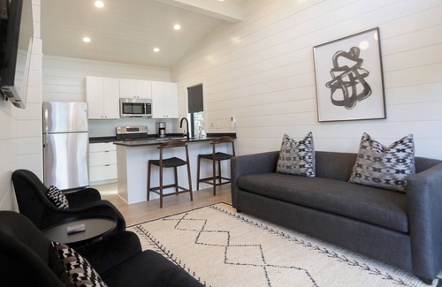 ONE BEDROOM CABIN - SLEEPS 4: You will love The Manor. The modern design and shiplap walls provide a cozy space for you to enjoy your time at the lake. The cottage has brand new furnishings (2020) from Article, CB2, Wayfair, World Market, Homegoods, and Overstock.
