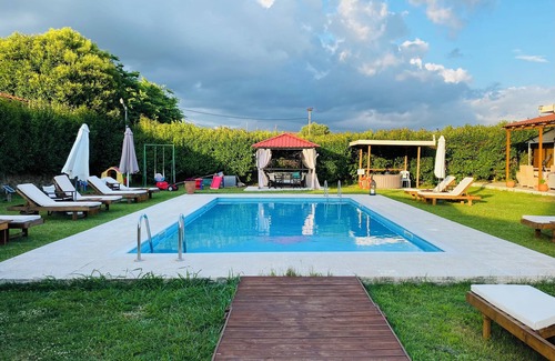The mansion of Dionisos and Dimitras is located in Archaia Olympia. The mansion of Dionisos and Dimitras provides accommodation, featuring Air Conditioner, Pet Friendly, Pool, among other amenities. This Villa features Air Conditioner, Pet Friendly, Pool, to make your stay a comfortable one.
