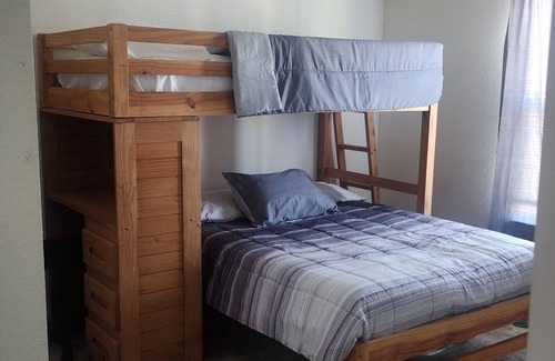 Tranquil family friendly area. Close to everything you need and comfy home away from home. Three bedroom 2 full bath home with living & dining room, full size kitchen, work space and eat at bar.