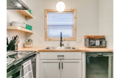 The Palms is an adorable two (2) bedroom, one (1) bath home in the heart of Norman. Both bedrooms have a king-size memory foam mattress, side tables, dressers, and closet. The living room has a (1) futon couch for an additional person to sleep on.