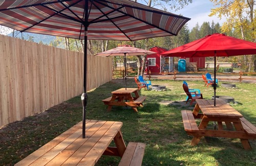 The Red Station by Glacier - Cabin #8 with AC and laundry is located in Coram. The Red Station by Glacier - Cabin #8 with AC and laundry provides accommodation, featuring Laundry, Parking, TV, among other amenities. This Cabin features Laundry, Parking, TV, to make your stay a comfortable one.