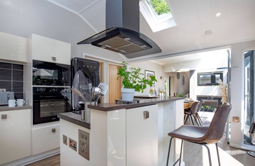 The two sumptuous bedrooms, both with en suites, promise restful nights in opulent surroundings. The master bedroom boasts a plush king-size bed and an en-suite shower room, designed for ultimate relaxation. The second bedroom offers versatile sleeping arrangements with zip-and-link beds that can be configured as a super king or two 3ft singles, complemented by an en-suite bathroom which is also accessible from the dining area, complete with a television in the free-standing bath, adding a touch of indulgence. Each bedroom is equipped with a flat-screen television, ensuring your entertainment needs are met.
