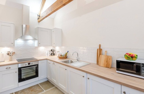 Shower Room: Walk-In Shower, Heated Towel Rail, Toilet. Underfloor central heating, electricity, bed linen, towels and Wi-Fi included. Initial fuel for wood burner included. Travel cot and highchair. Welcome pack and doggy extras. Patio with garden furniture and barbecue. Grounds with sitting out area (shared with other properties on-site). Wood-fired hot tub for 2 (private). Private parking for 2 cars. No smoking.. Welcome to The Stables, a wonderful barn conversion and one of three holiday homes forming Manor Farm Holidays. Just a stone’s throw away from the charming village of Cranswick in the unspoiled East Riding of Yorkshire. Meticulously crafted to a superior standard, this dog-friendly accommodation caters for two looking for a romantic get away with a wood fired hot tub. The Stables boasts ground source underfloor heating throughout ensuring warmth and comfort in every corner. The heart of the home is the open-plan living space, with exposed beams and a wood burner. The country-style kitchen is equipped with an electric oven and hob and a host of modern appliances, complemented by a dining table, and a spacious living area with a smart TV. Across the hall is a spacious zip and link super kingsize bedroom offering luxury soft furnishings. and smart TV. The accommodation is completed by a sleek and stylish shower room. The outdoor space features a patio with a wood-fired hot tub. Additional seating and a barbecue offer delightful options for al fresco dining. Guests can explore the shared landscaped grounds, including a large pond and nature walk.