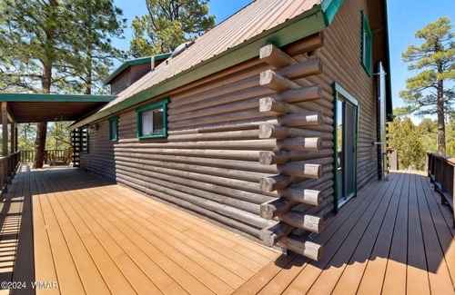Located in Heber-Overgaard, enjoy what this 4-bedroom cabin has to offer. Large 3 acre lot located on a quiet private road. New granite kitchen countertops. With 1 king bedroom, 2 queen bedrooms, and 2 bunkbed rooms, guests will find a tremendous amount of space to relax. The cabin features 3 bathrooms. Outside decks and space on all 3 levels and trees all around it feels like you are living in the forest Enjoy your time in Heber-Overgaard at our tranquil cabin.