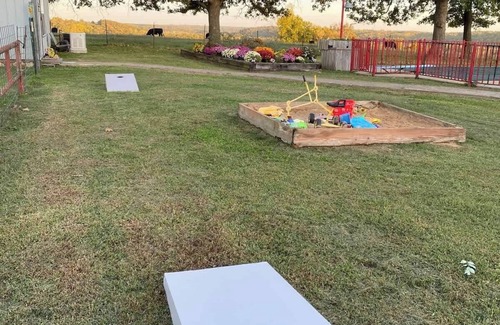 Patio, grill, porch swings, saltwater pool, Fire pit, Corn Hole, Sand Box, Butterfly Garden,