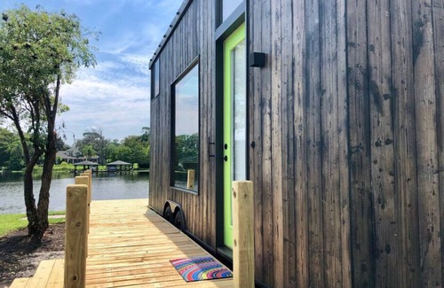 The View is a one of a kind tiny home- modern style mixed with comfortable textures and an unforgettable view of the lake. You won’t want to get out of bed with a view like this! This house features large picture windows, a comfortable living room, and a large private deck to make your stay a memorable one. Your tiny house stay won’t be a tiny experience...relax and unwind, enjoy sunrise yoga by the lake, and use our amenities to fish, kayak, and explore the natural beauty of Orlando!