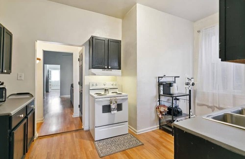 This property is a 3 bedroom, 1 bathroom unit that is located on the 2nd floor of a duplex. The large bedroom is the largest room in the house and has a queen-size bed, chest of drawers, night tables, sitting area and 43 smart TV. The medium bedroom has a full-size bed, night table, chair, chest of drawers, and 43 smart TV. The third bedroom is furnished as an office, but can be converted into a twin-sized bedroom upon request. The living room has plenty of seating and a 55 smart TV. The kitchen is fully stocked with basic appliances, pots, pans, dishes, cutlery and other basic kitchen items. All bedding and towels are provided. You will only have private access to your bedroom, and off limits of the other bedroom rented, but the rest of the home is shared with the other guest.