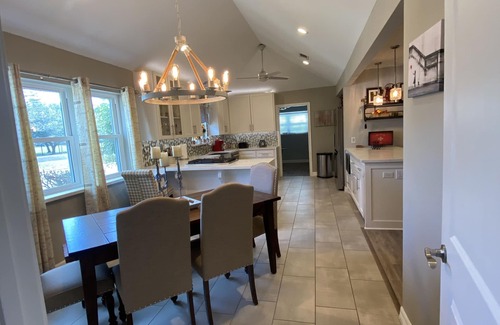 This large roomy house has it all. Plenty of parking , Two eating areas, Two separate living room areas/kids living room, Large fully stocked kitchen. ( Toaster, Coffee Maker, Electric skillet, Crockpot, cooking utensils, plates, cups, etc..),