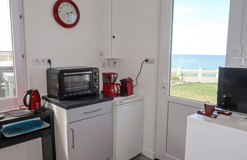 "Ti an Aod", 2-room house 50 m2. Bright, comfortable and tasteful furnishings: living/dining room with dining table and TV (flat screen). Exit to the garden. 1 room with 1 french bed (140 cm, length 190 cm). Open kitchen (mini-oven, dishwasher, 2 ceramic glass hob hotplates, toaster, kettle, microwave, freezer, electric coffee machine). Shower, sep. WC. Electric heating. Terrace furniture, barbecue (portable), deck chairs (2). Panoramic view of the sea. Facilities: washing machine. Internet (WiFi, free). Please note: non-smoking house. Maximum 1 pet/ dog allowed. Smoke alarm. 29030 000050 4D