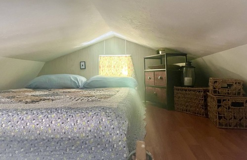 Adorable Tiny House set next to a farm and a pond. Two loft bedrooms. A kitchenette. And a daybed downstairs. Outdoor shower under the stars. Enjoy a campfire in a quiet country setting. Beach is 45 minutes to an hour. Tiny house Snuggled up next to a town, well known for antiquing. Private entrance on a one acre lot with a pond out front.