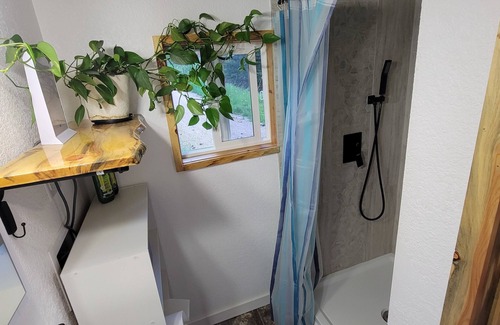 Tiny House in the meadow on Two Bit Creek. Minutes from Deadwood and Sturgis. Off the beaten path yet close to all the activities of the Black Hills. 200 sf Tiny home with large deck and plenty of Creekside access. Bedroom is a loft with a large skylight to count the stars. Ladder to the loft queen bed slides to open up the living area. Gas range, frig, RV toilet and Wi-Fi give you all the accommodations needed to enjoy this area. No Cell Service !!! Wi-Fi calling only. TV in loft is smart TV only. Room for trailer but will test your backing skills. Located 3 miles down a well-maintained dirt road and yet still biker friendly. This is basic living, but in a beautiful area. Easy access just 5 miles to Camp 5 trail head, hikers and UTV riders will love it too. Host home on property on other side of barn, 100yds away.