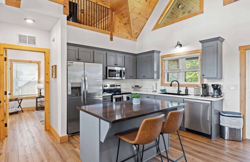 -Stainless steel appliances! Fully stocked kitchen with pots, pans, baking sheets, Keurig coffee maker, spices, oil, blender, crock-pot, dinnerware and silverware, toaster, smores sticks. Due to high volume of guests, things tend to run off. If there is something missing in the kitchen, please reach out to us to make your stay a 5-star experience!