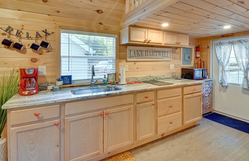 Embrace your inner mariner at this lakefront 1-bathroom vacation rental in Toccoa. While the studio itself boasts plenty of charm — including a private covered deck with a gas grill and access to shared kayaks and a paddleboat — the striking beauty of Lake Hartwell awaits just steps away. When you're ready to opt outside and explore, take your pick from hiking to Henderson Falls Park, touring the Miles Through Time Automotive Museum, or wine tasting at Three Sisters Vineyards & Winery.
