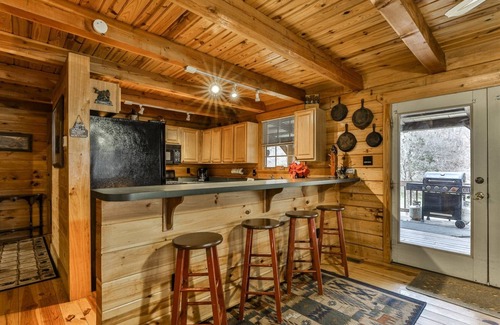 The open floor plan of the cabin creates a welcoming and spacious atmosphere, while the wood-burning fireplace provides a warm and inviting ambiance. Whether you're cuddled up with a good book or enjoying a glass of wine with friends, the fireplace is the perfect spot to relax and unwind.