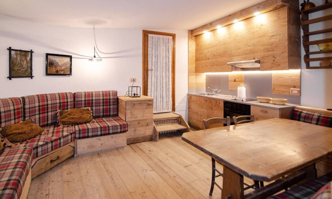 Basement in typical village of Cortina d'Ampezzo, this studio apartment welcomes you to discover the secret wealth of the quiet d silence of the area. Outside meadows and forest, sun and snow. It is a basement apartment, recently renovated and well furnished in alpine style, with underfloor heating. Perfect for a couple or small family, it consists of a living room with well-equipped kitchenette and double bed, walk-in closet and bathroom with tub. It is possible to rent a crib with rails for children under four years old. The apartment has an outdoor parking space. A car is necessary.The tourist tax is not included in the price displayed on the portal.