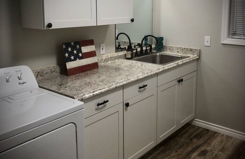 Welcome to Arrowhead Landings vacation rental located 12 miles south of Hemphill, TX in the Six Mile Community just minutes away from Toledo Bend Lake. Although not a waterfront property you will definitely enjoy your stay at this newly renovated three bedroom house that is within walking distance of the Sportsman’s Cafe and less than half a mile to Six Mile Public Boat Ramp. This house will provide you and your family and friends with the perfect modern base camp to explore Toledo Bend Lake and Sabine National Forest. This cozy house has been completely renovated with new cabinets, flooring, plumbing fixtures and paint. The house has two covered porches as well as an outdoor fire pit and charcoal grill for your enjoyment. Accommodations include a king bed in the master bedroom, a queen bed in the second bedroom, and a queen bed in the third bedroom. Additionally, the living room has a new sleeper sofa that accommodates two additional guest.