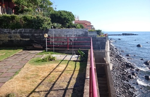in Torre Archirafi (Ct), 30 meters from the sea, a two-room apartment on the first floor is rented per week, with three beds, kitchenette, service with shower and hot water, livable panoramic terrace; view on citrus grove, Etna and sea. It is part of an elegant residence with a large garden and private access to the sea with a pebble beach and volcanic boulders. Torre Archirafi, a fishing village with a characteristic small port, is a hamlet of Riposto located at the foot of Etna, in the province of Catania. It can be reached in just 30 minutes from Fontanarossa International Airport using the Catania-Messina motorway (Giarre exit). It is 20 minutes from Taormina, 20 minutes from the Accastello stacks, about 1 hour from Syracuse and 5 minutes from the brand new tourist port of Riposto (over 360 berths) which allows the mooring of various categories of boats from 8 to 40 meters and is contiguous to the historical center, offering the possibility of using commercial structures, services, a local market and the characteristic fish market. From the neighboring municipality of Mascali it is possible to make excursions on Etna with off-road minibuses. For golfers, only 15 km away, there is the exclusive Picciolo Golf Club.