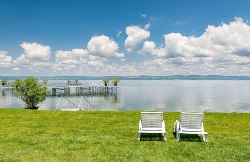 Balatonöszöd 9 km from Balatonlelle: Cosy semi-detached house "Toscana", 2 storeys, built in 2005. Residential area (villas), 50 m from the lake, from the beach. Private: property 300 m2 (fenced), garden with lawn and trees. In the house: WiFi, central heating system, air conditioning. Available: bicycles (extra). Grocery 3 km, supermarket 8 km, restaurant 2 km, bakery 3 km, café 2 km, bus stop 2 km, railway station 2 km, grass beach 50 m, thermal baths "Csiszta" 38 km. Surf school 6 m, sailing school 8 km, tennis 2 km, cycle lane 50 m. Nearby attractions: Siófok Giant Wheels 30 km, Kereki Dinosaur Park 17 km, Tihany 15 km, Festetics Castle 60 km. Please note: baby equipment on request.