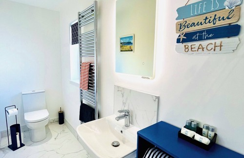 Large patio doors lead to a private sunny paved patio with seating, allowing you to soak up the beautiful surroundings. Our ensuite shower room features a modern walk-in glazed shower enclosure, and we provide guest toiletries, including shower gel, shampoo/conditioner, and hand cream for your convenience.