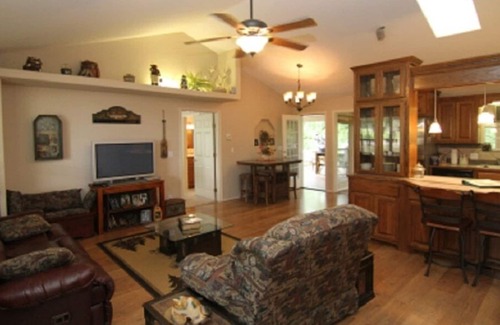 Tree House Hideaway is the perfect description for this amazing upscale vacation rental. The view from the bright sunroom and spacious back deck makes you feel like you are living up in the trees!