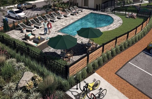 This modern micro home includes everything you’d want: a full kitchen, bedroom with a queen bed, bathroom, desk area, and an open living area with a couch and large flatscreen tv. It also includes high ceilings and windows for natural light and an outdoor patio. As part of the Casata community, it also comes with a resort-style pool, modern fitness center, co-working space, and a park with an outdoor stage for live events! We require a valid photo ID for your stay.