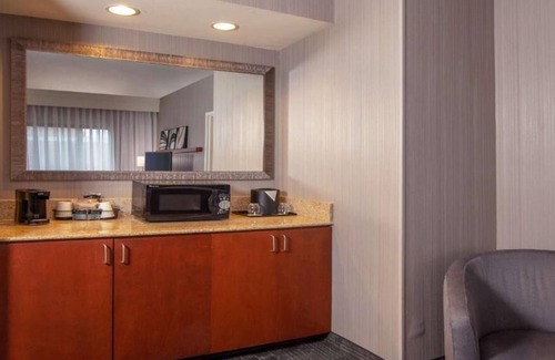 Make the most of the property’s convenient amenities and facilities. Enjoy your time in the indoor pool, hot tub, and well-equipped gym. Try American cuisine for your dinner, snacks, and relaxing drinks. The seating area in your room is purposefully designed to provide propitious conditions for productive work. Business travelers are the usual frequenters of our hotel because they enjoy the quick and hassle-free customer service and access to all the necessary equipment in the business center. The conference space is ideal for business meetings and workshops. Families enjoy their stay here, with lots to keep their kids entertained.