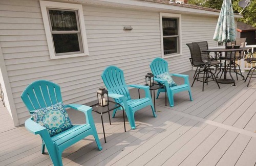 The home features a cozy layout with two bedrooms and one full bathroom. The living room offers comfortable seating for up to four and also opens to a bar area, perfect for enjoying a beverage after a day of exploring! The kitchen is well equipped and has a dining area as well. The master bedroom has a queen-sized bed, and the second bedroom has a full-sized bed. The exterior of the home offers a large and lighted back deck with outdoor furniture and a grill. Guests will have a backyard to enjoy and ample parking.