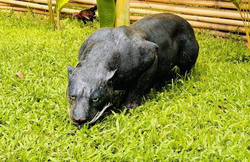Hot Jacuzzi: Unwind in the hot jacuzzi, nestled in a tranquil garden corner adorned with unique Moai statues, enhancing the exotic ambiance.