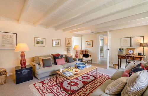 This semi-detached stone cottage has distinctive white painted walls, beautifully mixing old and new, with its original architecture and newly refurbished interior, contemporary fireplace with glass fronted wood-burner and slate hearth. The large comfortable living room and spacious kitchen have more than enough room for four, and doors lead out to an expansive lawned garden, patio with furniture and play equipment.