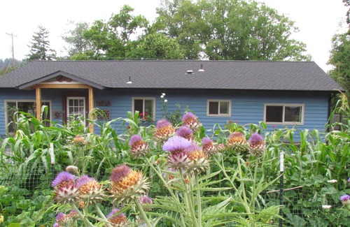 You may enter or exit through the pottery or the door facing the park. It is an extraordinarily safe, residential area within walking and bike distance of almost everything you'd come to see and be part of in Eugene. Be welcomed and entertained by Sterling the dog and our chicken flock.