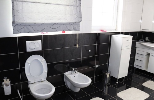 Two separate double rooms Uma is the unit in Holiday Home Uma, located in the town of Visoko at the address Prijeko, right next to the river Fojnica, 2.5 km from the attraction "Pyramid in Visoko", it offers a free WiFi and free private parking are available. In one room there are two separate beds that are next to each other and can be considered a double bed, an armchair to sit on, a TV, while the other room is entered from that and also contains two separate beds that can be considered double because they are joined, an armchair in the room. This unit has a shared bathroom with free toiletries and towels, it is located outside the room it shares with one double room, the bathroom has a key so you can lock it yourself. Laundry service is available for a minimum 7-day stay in the accommodation at no additional charge with your laundry products, as well as ironing facilities in the laundry room.